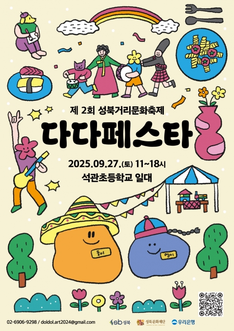 다문화가정, 이주민, 지역 대학, 청년, 예술가, 어린이, 청소년 등 다양한 주체들이 함께 하는 지역밀착형 축제2025년 9월 15일 -- 성북구(구청장 이승로)와 성북문화재단(대표이사 서노원)에서는 오는 27일 서울 석관초등학교 앞(돌곶이로22길 일대) 거리와 학교운동장에서 ‘제2회 성북거리문화축제 - 다다페스타’를