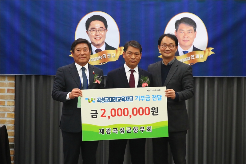 재광곡성향우회에서 기탁한 기부금은 지역사회의 인재 양성과 교육지원을 목적으로 하며, 향우회원들이 고향 발전을 위해 마음을 모은 결과이다.