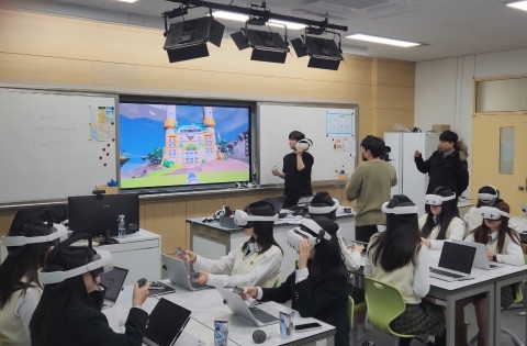 - 위 사진: 동덕여중 양자역학 실감형 시범교육(사진=한국양자협회)