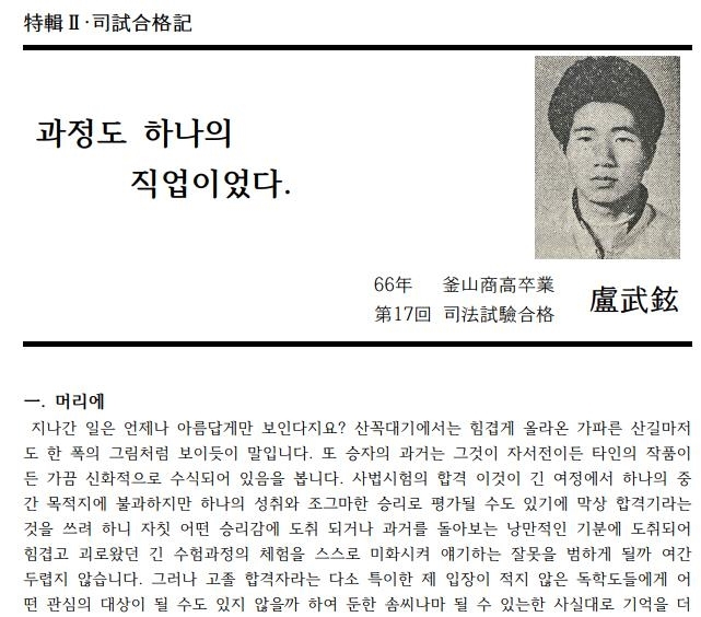 상고 출신 노무현의 사시 합격기 [네이버 블로그 UCLAX 캡처]